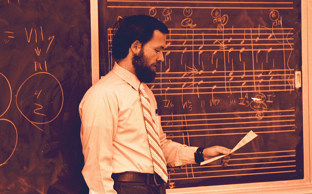 « Le seul problème, c’est qu’un professeur qui ne joue jamais, à terme il ne va pas travailler son instrument dans sa classe pendant trois heures par jour pour rien. C’est humain. […] Quand vous avez des “grands élèves” qui arrivent, il faut jouer une partition. Il faut montrer. C’est pas comme un entraîneur de foot ou de piscine qui chronomètre, qui dit qu’il faudrait mieux faire ça mais qui montre pas. Nous, on joue à la place de l’élève, on lui montre. Un professeur qui ne montre pas, il n’a pas de classe. Les élèves quand ils ont passé 5/6 ans avec le prof, qu’ils arrivent à 14/15 ans, ils sont critiques. Si le prof joue pas ou montre des défauts, ça ne marche pas. Mais si le professeur montre vraiment une différence entre ce que fait un “grand élève” et ce qu’il fait lui, c’est bien. Mais le prof qui laisse l’instrument dans la boîte et qui vient sans instrument au conservatoire, ça ne va pas du tout. »