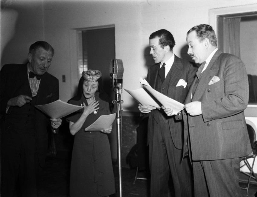 Figure 4. Quatre comédiens du radioroman « Un homme et son péché » de Claude-Henri Grignon jouant sur les ondes de la station CBC (Radio-Canada) à Montréal