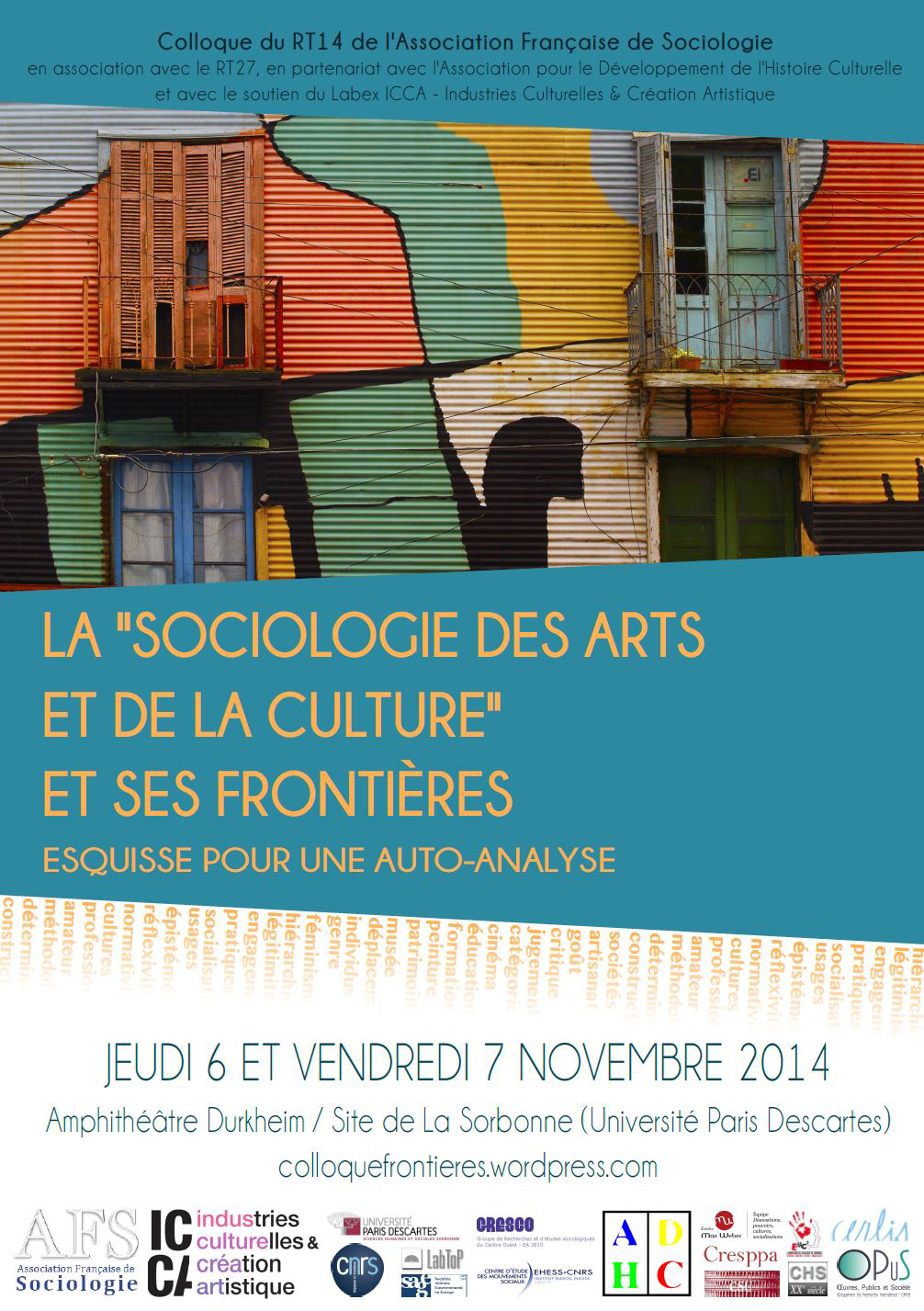 L’affiche du colloque de 2014 sur les frontières disciplinaires (internes et externes) de la sociologie de l’art et de la culture.