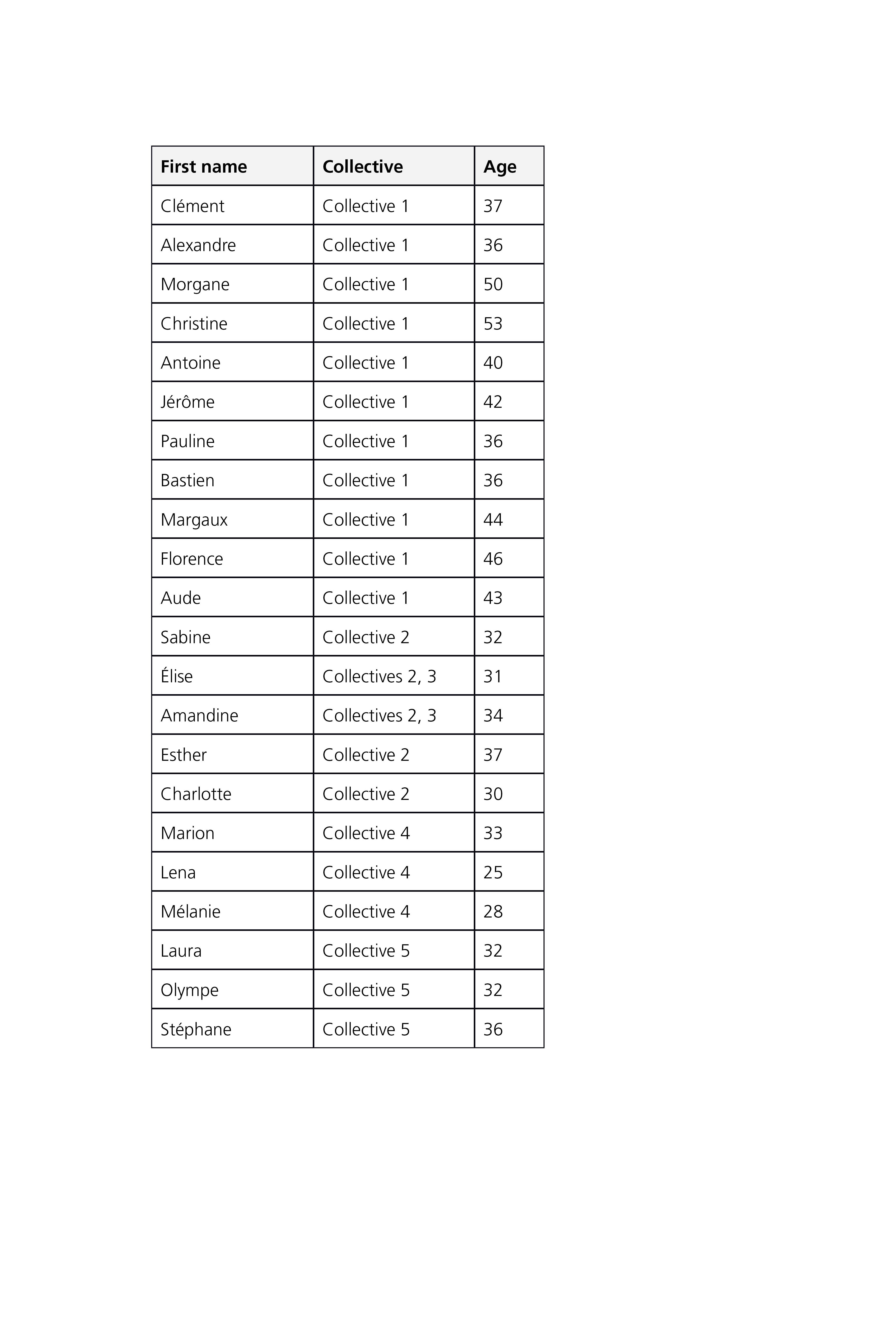 Table 2. List of collectives under study
