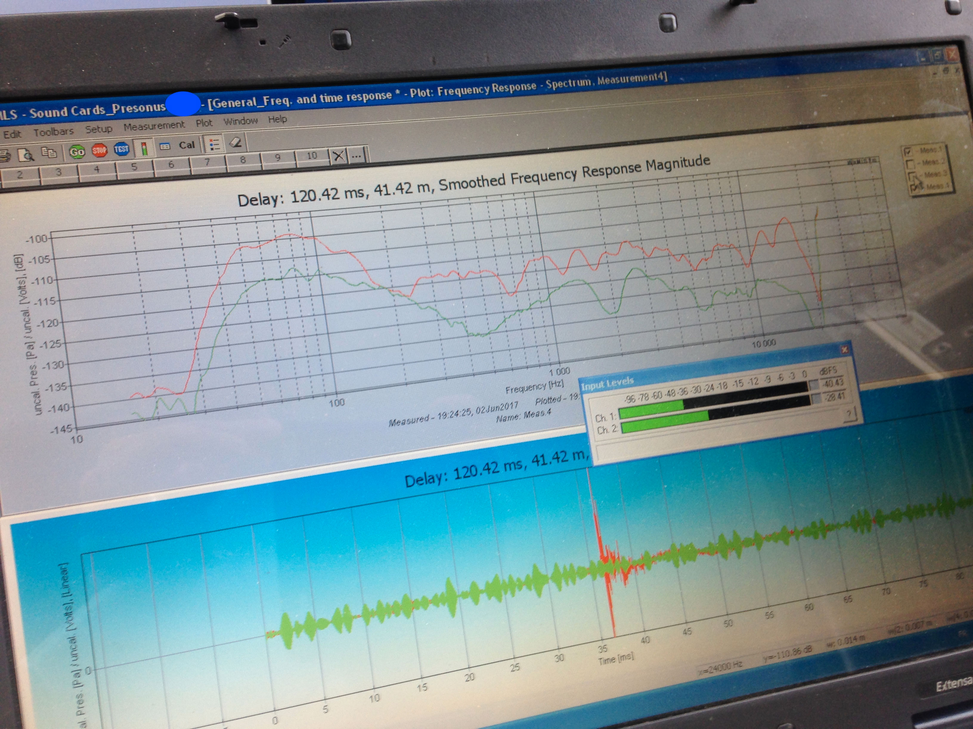 La tâche d’accorder le système de sonorisation au lieu est présente dans toutes nos observations. Le système doit être assemblé de A à Z, par exemple pour des festivals ou pour d’autres événements éphémères de la sorte. Il est installé de façon permanente dans les lieux qui accueillent régulièrement des concerts. Cependant, le système est toujours « calibré », ce qui signifie que l’ingénieur du son façade s’assure que le système ne provoque aucune distorsion en lui-même. Il ressort de nos observations que l’ingénieur du son s’acquitte souvent de cette tâche en jouant un morceau de musique qu’il connaît bien et en comparant ce qu’il entend avec ce qu’il attend de ce morceau. Mais on peut également avoir recours à la technologie, plus particulièrement dans les grosses productions. Au cours de deux observations, nous avons pu remarquer l’utilisation d’un « balayage sinusoïdal ». Un microphone de mesure est placé dans la salle et un son sinusoïdal est joué sur tout le spectre de fréquences audio.